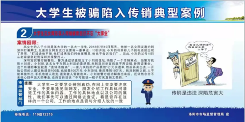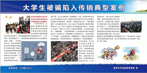 為讓廣大學生認清傳銷本質(zhì),自覺防范抵制傳銷活動,11月23日下午,洛陽市市場監(jiān)督管理局、洛龍區(qū)市場監(jiān)督管理局走進洛陽理工學院,開展“2021年洛陽市抵制傳銷進校園宣傳活動”。