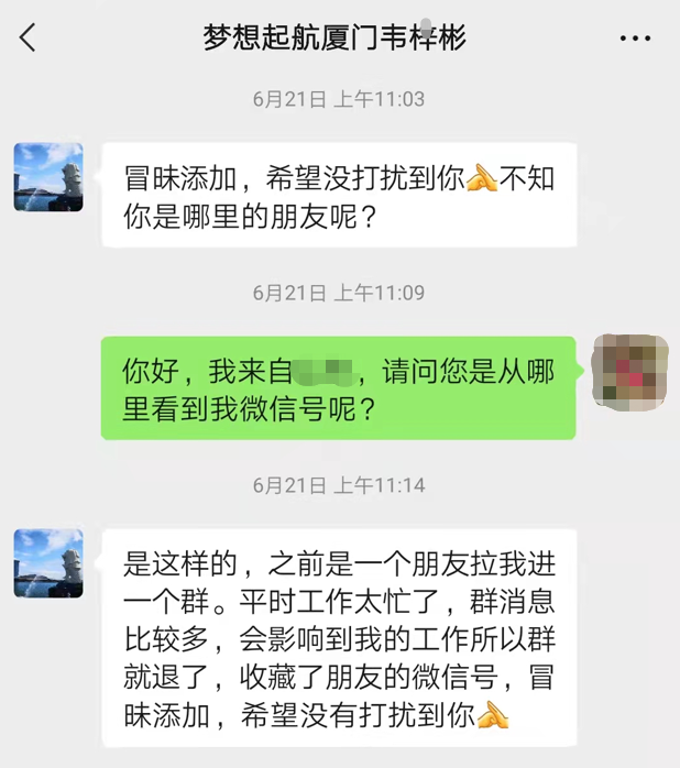 韋某彬表現(xiàn)的彬彬有禮,就沒有當(dāng)即刪除。