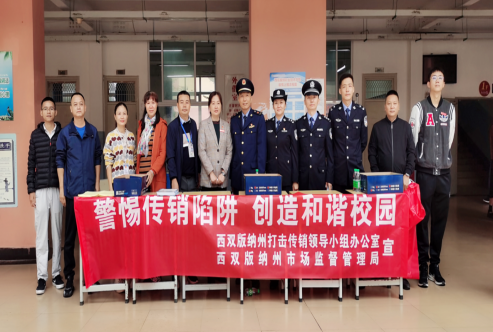 2021年11月26日,西雙版納州市場(chǎng)監(jiān)督管理局聯(lián)合州公安局、景洪市市場(chǎng)監(jiān)督管理局和景洪市公安局到西雙版納州職業(yè)技術(shù)學(xué)院、傣醫(yī)學(xué)院開展打擊傳銷宣傳活動(dòng)。