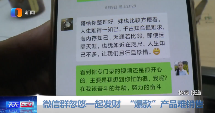永川的李女士懷疑自己是遭遇到了殺豬盤(pán),她被拉進(jìn)了一個(gè)微信群,被人忽悠去做微商,結(jié)果李女士花了一大筆錢(qián)去進(jìn)貨,現(xiàn)在陷入到一件產(chǎn)品都賣(mài)不出去的尷尬局面。