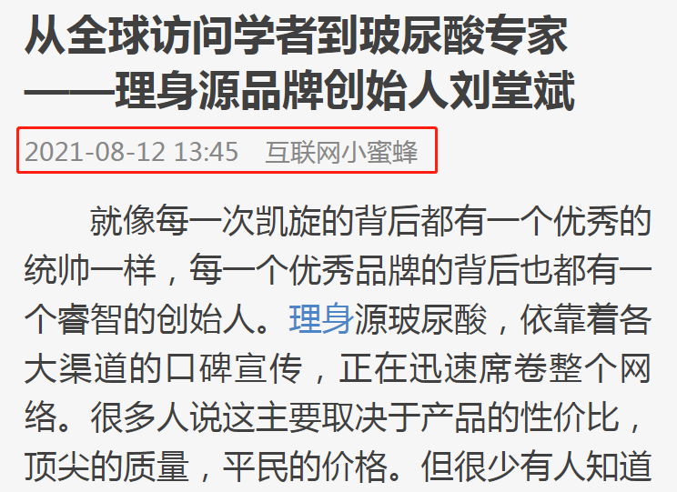 張女士擔心對方是騙子,還專門上網(wǎng)調查了一番,有對劉堂斌的報道:從全球訪問學者到玻尿酸專家——理身源品牌創(chuàng)始人。看完這篇報道后,張女士漸漸對劉堂斌產(chǎn)生信任,并且覺得劉堂斌真誠、自帶正能量。