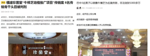 該案并非孤例,全國各地近幾年接連有“牛樟芝”傳銷團伙落網(wǎng),他們掛著不同的“牛樟芝”“品牌”,涉及巨額傳銷資金。