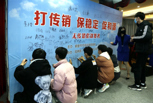 發(fā)表時(shí)間:2021-12-22 17:49作者:鶴壁市場(chǎng)監(jiān)管來源:鶴壁市場(chǎng)監(jiān)管 為進(jìn)一步鞏固打擊整治傳銷違法活動(dòng)工作成果,推動(dòng)打擊傳銷工作深入開展,防止不法分子誘騙大學(xué)生從事傳銷,12月21日上午,鶴壁市市場(chǎng)監(jiān)管局、鶴壁技師學(xué)院、玫琳凱(中國(guó))化妝品有限公司河南分公司聯(lián)合舉辦了一場(chǎng)以“打傳銷、保穩(wěn)定、促和諧”為主題的校園宣傳教育活動(dòng)。