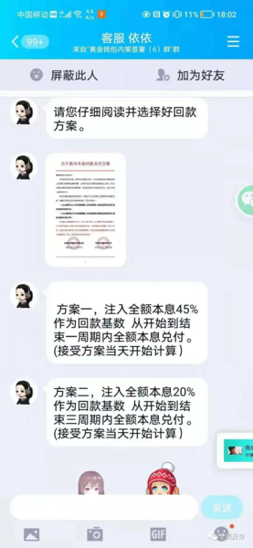 騙子與投資者取得聯(lián)系,提供回款方案。