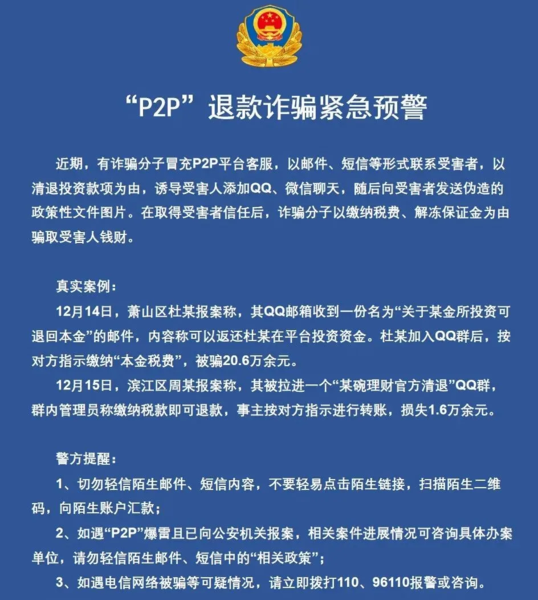 騙子又盯上了這個(gè)“時(shí)機(jī)”,用上了新的招式:冒充爆雷的P2P平臺(tái)來(lái)退款