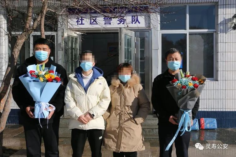 12月26日13時,全體人員安全返回靈壽,曹某一家團聚,曹某周母親為民警送上鮮花以表感激。