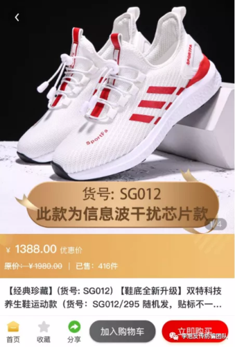 這個所謂的導(dǎo)師和其團隊是做什么的?記者添加對方微信后得知,團隊主要賣的是“量子鞋”,此外還有很多科技養(yǎng)生產(chǎn)品。而想要加入團隊,就要購買一雙價值399元的鞋。導(dǎo)師隨后發(fā)來了一個二維碼,記者掃碼注冊后看到,這是一個網(wǎng)絡(luò)商城,其中所賣的鞋子有多種檔位,399元是最便宜的,最貴的鞋子一雙就要1388元。