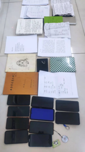 民警到達(dá)現(xiàn)場(chǎng)后,一大股刺鼻的味道鋪面而來(lái),凌亂的房間、昏暗的燈光、30余平方米的房間竟有十余人聚集在一起聽(tīng)著所謂講師的“授課”。民警迅速核實(shí)相關(guān)人員身份并詢(xún)問(wèn)相關(guān)情況,其閉口不答,后民警發(fā)現(xiàn)了他們藏匿的大量筆記本及話術(shù)單,并將一行人員傳喚至派出所進(jìn)行調(diào)查。