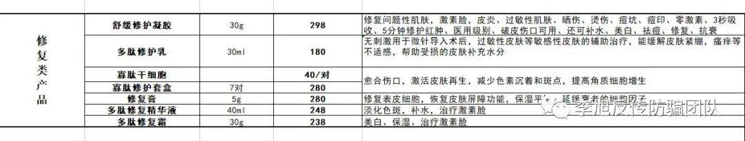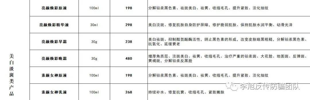 從上述代理發(fā)來的零售產(chǎn)品價(jià)目表中,我們可以看,主要功效一欄中,多款產(chǎn)品的功效有提到祛斑、美白、收縮毛孔等字眼,甚至有些還宣稱可以愈合傷口,激活皮膚再生,醫(yī)用級(jí)別等。
