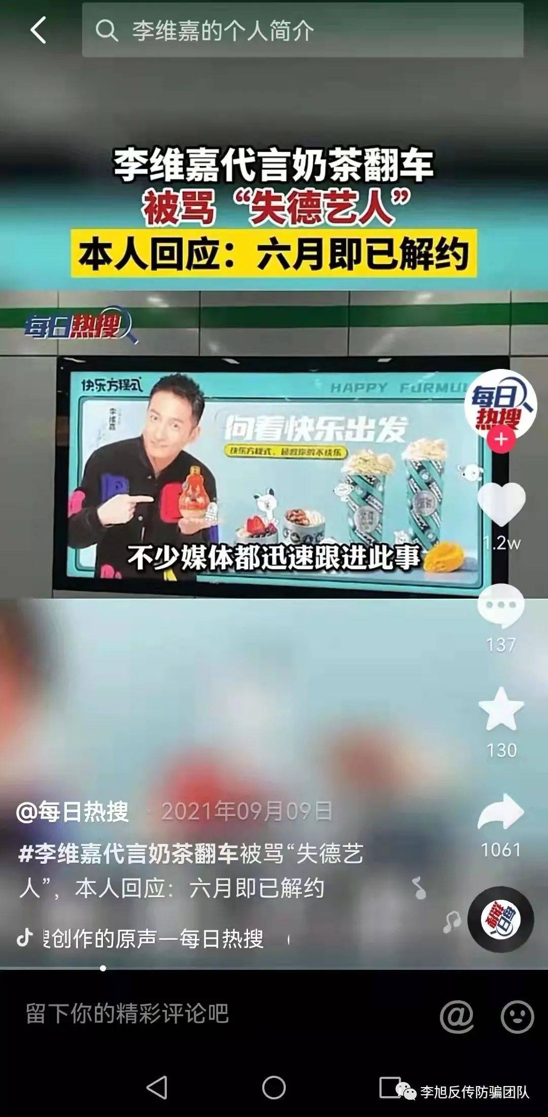 同年九月李維嘉代言的奶茶快樂(lè)方程式也發(fā)生了翻車事故,這次事故關(guān)于明星代言出事,明星代言需不需要承擔(dān)連帶責(zé)任,需要承擔(dān)怎樣的連帶責(zé)任,也成了當(dāng)時(shí)的熱門話題。很多受害者都因?yàn)樾湃蚊餍谴圆艜?huì)上當(dāng)受騙。 很多網(wǎng)友認(rèn)為明星代言賺錢太容易,但一出事就趕緊撇清關(guān)系拍拍屁股走人,也有網(wǎng)友說(shuō)明星代言翻車,只需發(fā)表聲明道歉,并不會(huì)造成多大的損失,但對(duì)于受害者來(lái)說(shuō),以后卻需要負(fù)債甚至破產(chǎn)。因此引起了眾多網(wǎng)友的憤怒。 李維嘉翻車代言事件的發(fā)生之后,央視網(wǎng)也發(fā)布了央視網(wǎng)發(fā)布了一條視頻,邀請(qǐng)律師回應(yīng)了公眾關(guān)注的明星代言問(wèn)題,并借助李維嘉代言翻車事件詳細(xì)說(shuō)明了藝人該承擔(dān)怎樣的連帶責(zé)任。