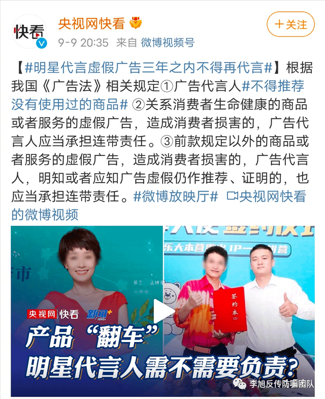 近幾年隨著粉絲追星的熱情高漲,明星流量的增加,越來(lái)越多的商品找到明星代言,而隨著明星代言商品的熱銷,更多的商家為了品牌更好的宣傳,推銷自己的產(chǎn)品,在選擇產(chǎn)品代言人的時(shí)候會(huì)優(yōu)先考慮明星代言,明星代言也就成了當(dāng)下的一種趨勢(shì)。 但在這種趨勢(shì)之下,利益高漲導(dǎo)致很多不法分子趁虛而入,虛假騙局越來(lái)越多,明星代言加盟翻車的新聞更是層出不窮。