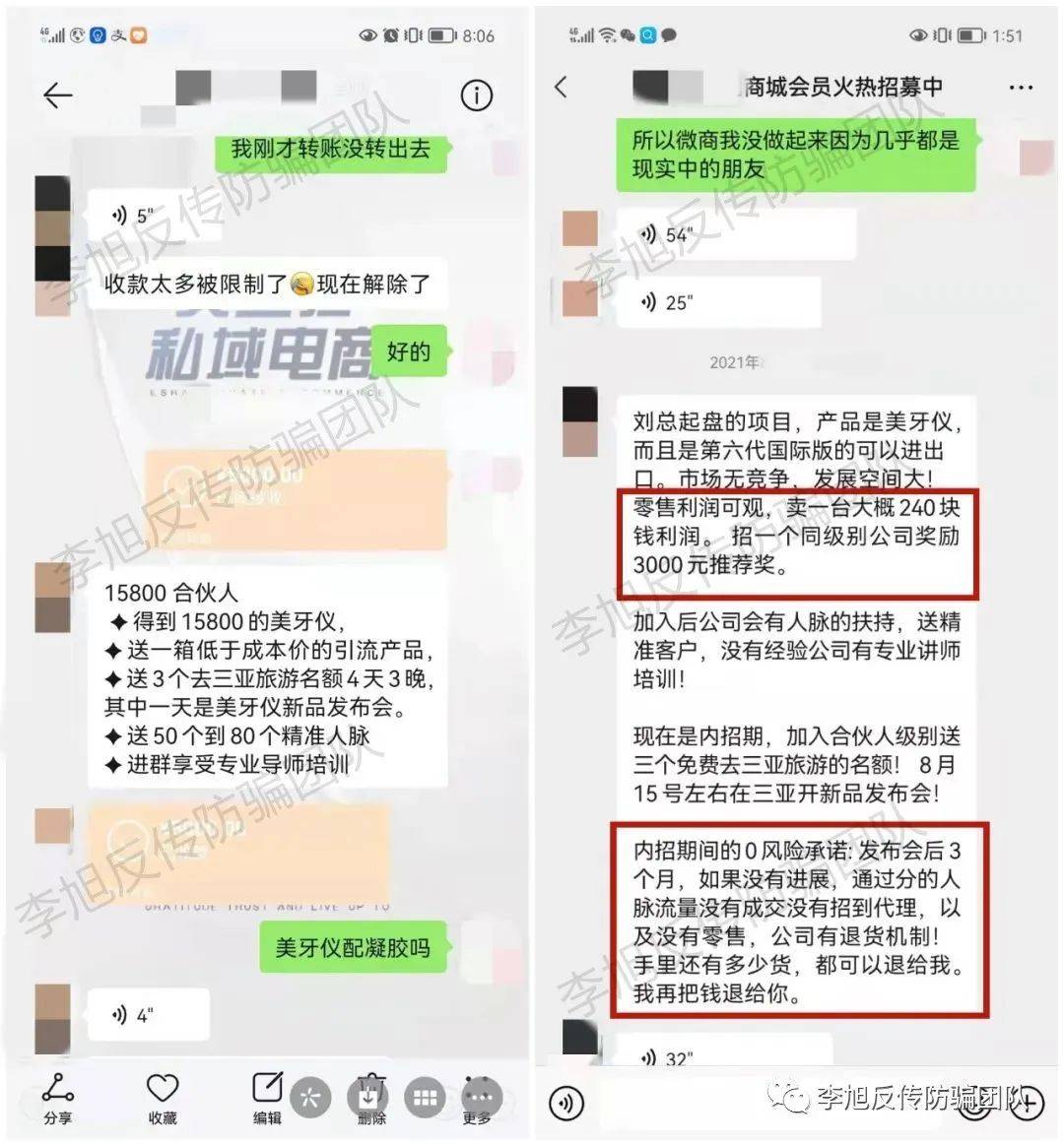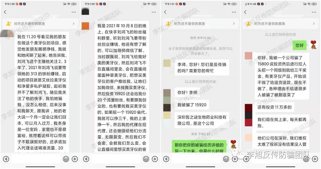 日前,艾絲拉相關(guān)受害者還在就退款退貨問題跟劉某飛團(tuán)隊人員協(xié)商,我們也將整理資料跟相關(guān)部門反饋,后續(xù)進(jìn)展如何,李旭反傳防騙團(tuán)隊將持續(xù)跟蹤報道。