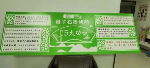 深圳市市場監(jiān)管局發(fā)布的圖片顯示,上述公司有產品宣傳中還稱,“量子黑科技不打/不吃藥/不針灸,100天跟亞健康(三高等)說再見”,還有一款產品名為“量子石墨烯艙”,可“排毒”“防癌抗癌”“提高免疫力”“祛邪氣”“增強人體細胞的自我修復功能”。
