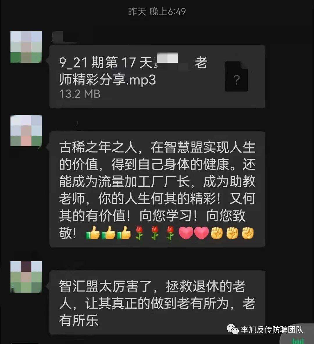 前段時間,李旭反傳防騙團隊接到多位網(wǎng)友的反饋,稱其家人加入智匯盟的131社群之后性情大變,懷疑該培訓(xùn)涉嫌精神傳銷有害培訓(xùn)。針對此事,李旭反傳防騙團隊編輯文章全網(wǎng)發(fā)布。