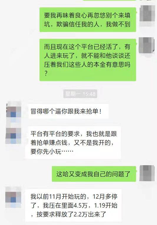 半信半疑的小王決定抱著觀望的心態(tài)在等等看,終于在3月5號平臺可以重新開拍,小王覺得這應(yīng)該不是個騙局,但這個念頭剛剛出現(xiàn)的下一秒,小王就發(fā)現(xiàn)了一些問題,平臺確實可以開拍了,但因為之前系統(tǒng)故障鎖單的本金只釋放了2600元,小王還有7384元本金未釋放,小王在群里面詢問,朋友就給她發(fā)來了消息說,剩余的本金需要按照新規(guī)定才能釋放。