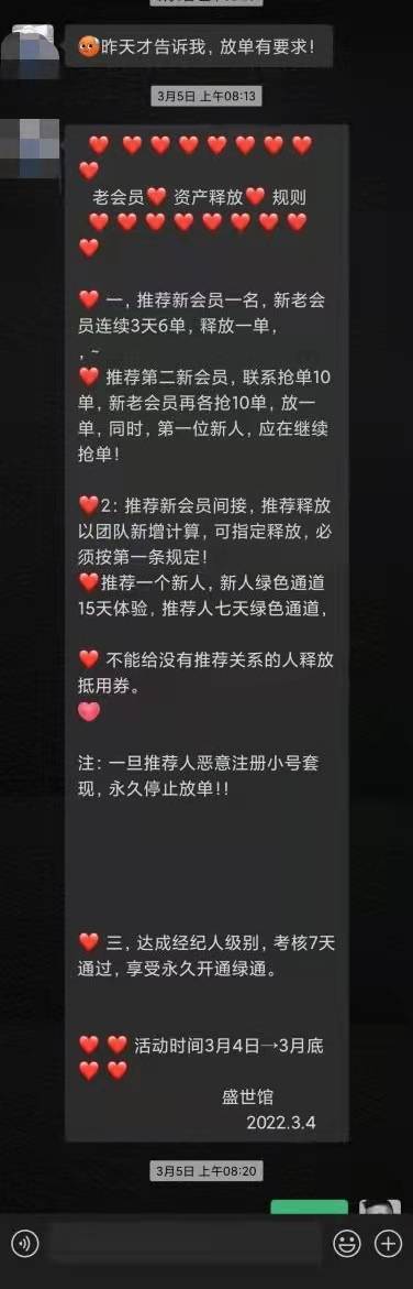 而那所謂的新規(guī)定里面的第一則,就是推薦新會員一名,新老會員連續(xù)3天6單,釋放一單??吹竭@里小王突然明白了這就是繼續(xù)拉人頭進來搶單,然后達到一定數(shù)量后才能釋放之前被押的本金,他們不就是想套住我們這些有本金的人繼續(xù)騙新人進來繼續(xù)刷單,那這個平臺不就是靠拉人頭以刷單為幌子的傳銷組織嗎? 明白了這些小王很快清醒了過來,沒有在進行交易了,她在微信群又觀察發(fā)現(xiàn),最近幾天微信群里增加了40個新人,等到達一定數(shù)量的時候,又以系統(tǒng)故障為由鎖單,讓更多的人血本無歸,想要拿回自己的本金,就要不斷拉新人進來,循環(huán)往復(fù)。而之前拉小王注冊,進群的朋友明知是陷阱還在不停的介紹別人進去,無論小王怎么勸都不聽。 據(jù)小王反饋的信息中說,這個平臺的運營公司是,安徽冬雅墨網(wǎng)絡(luò)科技有限公司,而這個雅墨APP,實為2021年被查處崩盤后的“文韻商城”,群主肖某建立微信群“盛世管-招商群”伙同陳某某、徐某某等人自2022年1月19日開始線上拍賣字畫刷單為由,欺騙用戶每天上午和下午進行搶單,轉(zhuǎn)拍后,第二天賣出就可賺取1.3%的利潤,平臺收取1.7%的轉(zhuǎn)拍費用。