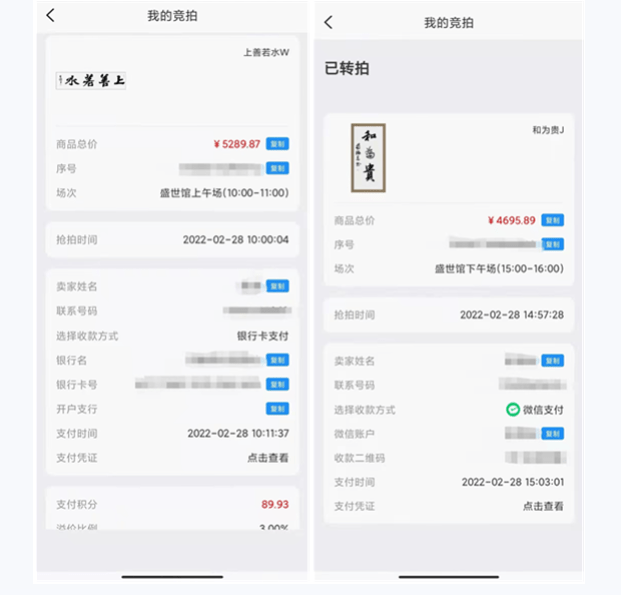 據(jù)網(wǎng)友小王反饋說,她是在1月25日被朋友拉著在一款名為雅墨APP的軟件(線上拍賣字畫的平臺)上進行了注冊,隨后還被拉進了他們特有的微信群“盛世館-招商群”。注冊當(dāng)日小王就搶了一單,26日賣出以后賺了利潤1.3%,前后一共買入18單,賣出16單,2月28日買入兩單(上午買入一單5289元,下午買入一單4695元,共計9984元)但就在當(dāng)天下單不久后不知什么原因,小王的這兩單被鎖單了。