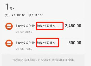 ▲收款方顯示為杭州盈夢文化