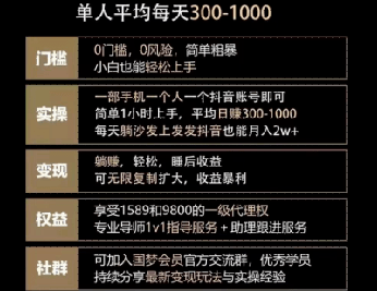 紅星新聞記者從“流量王”的廣告頁面上看到,“流量王”項目原價9800元,活動價5980元。李輝透露,對方說有優(yōu)惠,項目廣告價目是從5980元降至2980元。廣告上,醒目的關(guān)鍵詞為“包賺錢”“易變現(xiàn)”“項目穩(wěn)定”“收益暴利”,并提醒單人平均每天300—1000元,強調(diào)“0門檻、0風險,一部手機一人一個抖音賬號即可,每天躺沙發(fā)上發(fā)抖音也能月入2w+”。