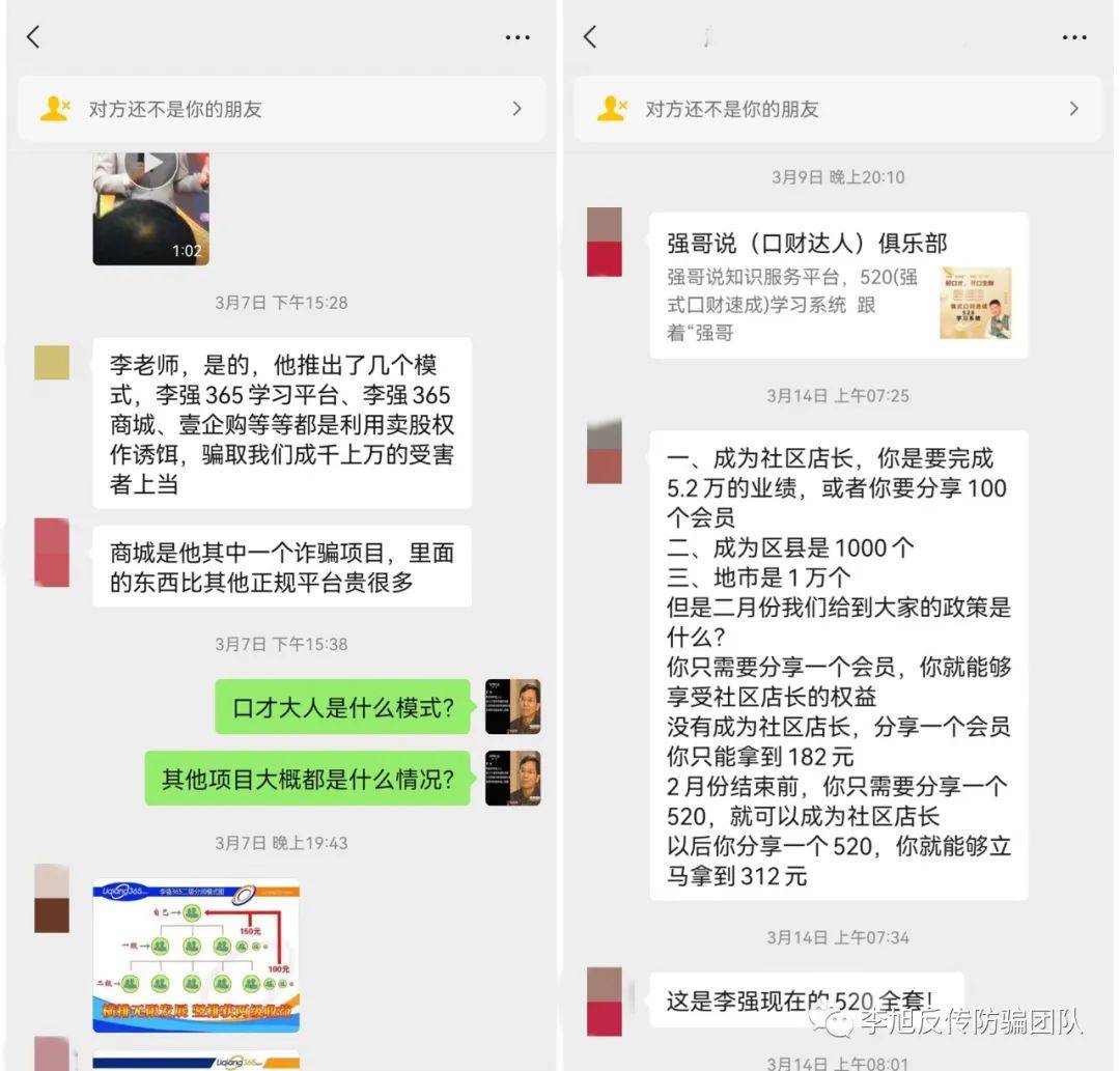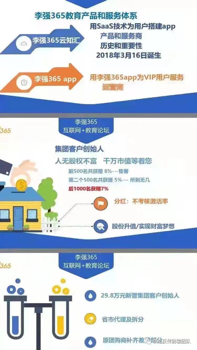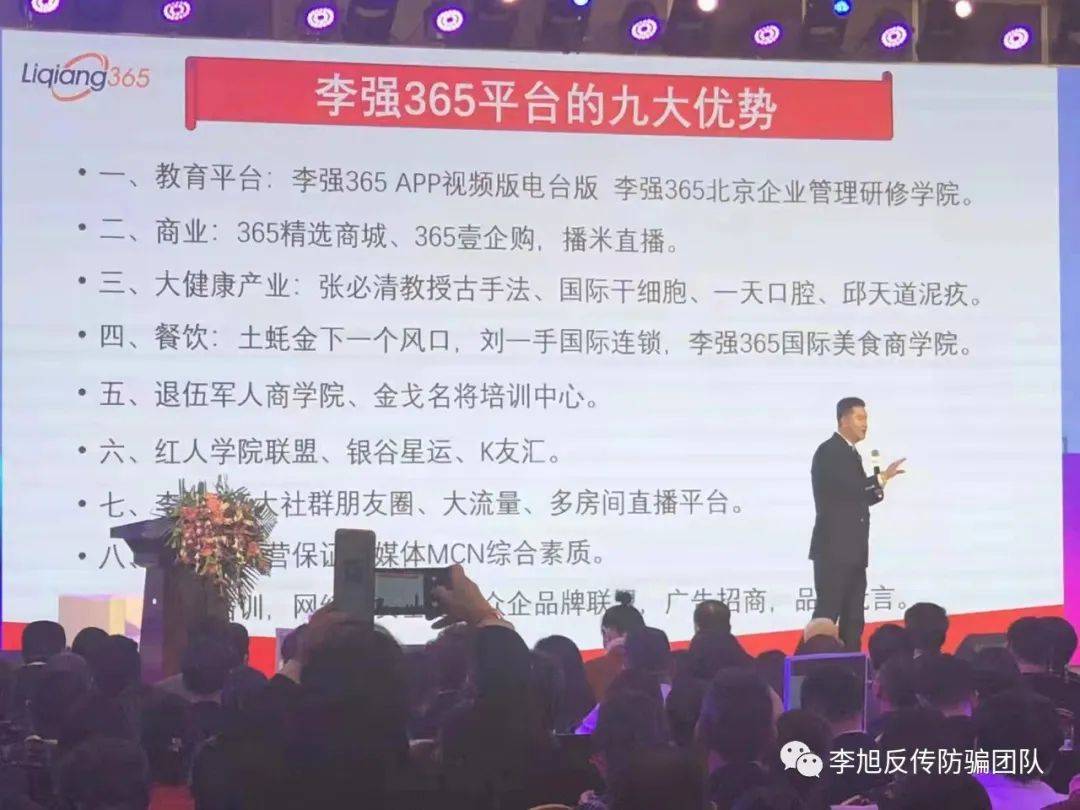 △部分網(wǎng)友反饋 來自廣西的小周跟李旭反傳防騙團隊反饋,他于2017年9月份,從朋友處了解到“李強365”的學(xué)習(xí)平臺,從此生活就變成了一場噩夢。 朋友介紹,在這個平臺上可以學(xué)到企業(yè)管理、家庭教育等方面的知識,也提到這個平臺創(chuàng)辦人李強就是一個做了幾十年企業(yè)培訓(xùn)的老師,除了幾十套光盤,這些光盤長期在機場、火車站等高端市場售賣、價格不菲。 當(dāng)時,朋友告訴小周,這個平臺正準(zhǔn)備上市,現(xiàn)在正招收創(chuàng)始股東,如果公司上市會得到成百上千倍的回報。經(jīng)過朋友反復(fù)的勸說、洗腦,小周有些心動了。 2017年10月份,小周隨朋友一起前往北京,參加了“李強365”舉辦的第23屆財富論壇。當(dāng)時正值“李強365”與某導(dǎo)演合作拍攝電影《胡楊的夏天》,也是首影發(fā)布會,場面很是壯觀。