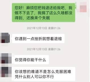 ▲受騙大學生提出退款后,遭到創(chuàng)業(yè)“導師”拒絕。受訪者供圖 柳雪想退錢。她覺得自己不僅受了累,也沒賺到什么錢,還虧了6000元,怎么看都不劃算?!拔乙惶岢鐾速M就被踢出群了,他們還說,讓我有本事就去報警?!绷┍硎?,對方曾多次警告她,付費行為純屬自愿,是她自己放棄,無法退款。而在付款前,雙方未曾簽過任何協(xié)議與合同。 與此同時,呂不還在不停發(fā)布著校園創(chuàng)業(yè)成功學視頻,拉人加盟入會。柳雪漸漸發(fā)現(xiàn),無論是哪種項目,創(chuàng)業(yè)大佬們使用的話術和“教學方式”都一樣。 那天,跟著柳雪創(chuàng)業(yè)的幾個舍友一同陷入了集體沉默。“其實我也曾懷疑過那些人。”“咱們怎么沒想到那種幾天就能咸魚翻身的故事是神話。”“真的是腦子缺根弦才會做這樣的發(fā)財夢,那些人估計就是靠著坑蒙拐騙起家的?!币酝?,大家每天都圍繞著“創(chuàng)業(yè)”聊到深夜,但這次,九點半熄燈前的交流只維持了三兩句話就結束了。 另一邊,半年下來,林陽也發(fā)現(xiàn)了端倪,他提出的退款請求也遭到了拒絕,被踢出了項目群。 楊某曾是“流量王”核心成員,他向新京報記者證實,大多數(shù)創(chuàng)業(yè)博主采用雷同的套路:成功添加學生微信后,將通過其朋友圈發(fā)布一些“成功案例”,使用一些項目中賺取到費用的付款截圖讓學生們相信,該項目能夠真正賺到錢?!捌鋵嵞嵌际羌俚模瑐卧斓慕貓D,只有極少一部分人能真的拿到獎勵和返利?!?/p> 根據(jù)多名大學生提供的付款憑證顯示,“流量王”項目的收款方名為浙江國夢傳媒集團有限公司。新京報記者調查發(fā)現(xiàn),該企業(yè)注冊地為杭州市錢塘區(qū),成立于2021年8月13日,為存續(xù)狀態(tài)。今年1月,因通過登記的住所或者經(jīng)營場所無法聯(lián)系,被杭州市錢塘區(qū)市場監(jiān)督管理局列為經(jīng)營異常。 4月7日,杭州市蕭山區(qū)市場監(jiān)督局工作人員對新京報記者表示,目前,相關企業(yè)法人一直無法聯(lián)系,具體案件仍在調查中。新京報記者致電浙江國夢傳媒集團有限公司,詢問“流量王”等創(chuàng)業(yè)項目涉及的拉人頭、分提成等模式。其工作人員表示,該公司所經(jīng)營的項目為合理合法的二級分銷,并非傳銷。 被騙之后 發(fā)現(xiàn)可能被騙后,柳雪開始在心里一遍遍琢磨,“為什么我會被騙?”她說,想通過自己的努力實現(xiàn)經(jīng)濟自由,對于他們這群被騙的人來說,傾訴自己的經(jīng)歷,或許也只是被當個笑話聽聽罷了。 4月,這些曾深陷創(chuàng)業(yè)騙局的大學生們自發(fā)組成了維權群。入群之后,柳雪發(fā)現(xiàn),和自己有著同樣遭遇的人遍布全國各地。“這樣的維權群總共有十三個,每個群都有二三百人?!睋?jù)她的不完全統(tǒng)計,大學生有1000余名被騙,涉案金額總計達400萬元左右。 學生們向當?shù)嘏沙鏊鶊缶?月11日,派出所工作人員告訴新京報記者,該案件已在處理中,初步認定為經(jīng)濟糾紛,已對涉案大學生進行教育,具體辦案細節(jié)不便透露。 因為受騙,學生們時刻關注破案的信息,他們在各個社交平臺上發(fā)起了“大學生反詐騙”超話,搜尋著關于該案的證據(jù)。最近,為了警示其他大學生,林陽牽頭制作了一系列短視頻,揭露校園創(chuàng)業(yè)成功學“大師”的套路,發(fā)布在社交平臺上。 隨后,更多的騙局浮出了水面。 “流量王”僅僅是騙局的冰山一角。在各大短視頻平臺中,搜索“校園創(chuàng)業(yè)”,仍可發(fā)現(xiàn)大量此類分享大學生創(chuàng)業(yè)項目的賬號,其話題點擊量高達7173.3萬次。該類賬號通常配以光鮮的個人簡歷,如大學創(chuàng)業(yè)三年成為某集團合伙人、幫助上萬大學生實現(xiàn)經(jīng)濟自由等,而視頻內容和文案也基本相似,大多為打掃寢室項目、舊衣回收項目、打印店項目。 記者通過短視頻平臺私信了多個賬號,均被要求添加個人微信。一個名為“小開學長”的短視頻博主在聊天中,向記者推薦了一款名為“元宇宙寵物店”的創(chuàng)業(yè)項目,稱每個月躺賺幾萬塊錢不是問題,沒有任何風險。 反詐民警陳強(化名)介紹,以網(wǎng)絡加盟等噱頭不斷發(fā)展下線,拉人頭,收取入門費是一種嚴重破壞市場經(jīng)濟秩序和危害社會穩(wěn)定的犯罪行為。實際上,依賴網(wǎng)絡平臺的傳銷、詐騙犯罪,在數(shù)據(jù)調取方面存在一定的現(xiàn)實困難。此外,有的涉案人員還會租用國外服務器,數(shù)據(jù)調取耗時久、周期長。 在多年參與辦案的過程中,陳強發(fā)現(xiàn),網(wǎng)絡傳銷會員多,組織人員之間的關系松散,甚至互不相識。而在涉案資金認定方面,涉案人員通常使用第三方支付平臺進行交易,輕易地繞開了銀行監(jiān)管,“很多資金經(jīng)過第三方支付平臺后,很難直接認定哪一筆屬于傳銷資金?!?/p> 陳強用“打不盡的老鼠”,來形容網(wǎng)絡上的傳銷詐騙團伙,“很多涉及傳銷的案件因為證據(jù)鏈無法閉合,層級、人數(shù)達不到刑責標準,參與者們來報案只能對他們進行批評教育?!标悘姳硎荆诰揞~利益驅使下,有些人即使清楚會受到刑罰,也會鋌而走險。在他看來,網(wǎng)絡傳銷有很強的裂變性和再生性,加大了基層干警的查辦壓力。 近日,“校園達人呂不”賬號已被注銷,新賬號“校園指路達人呂不”再次活躍在短視頻平臺中,