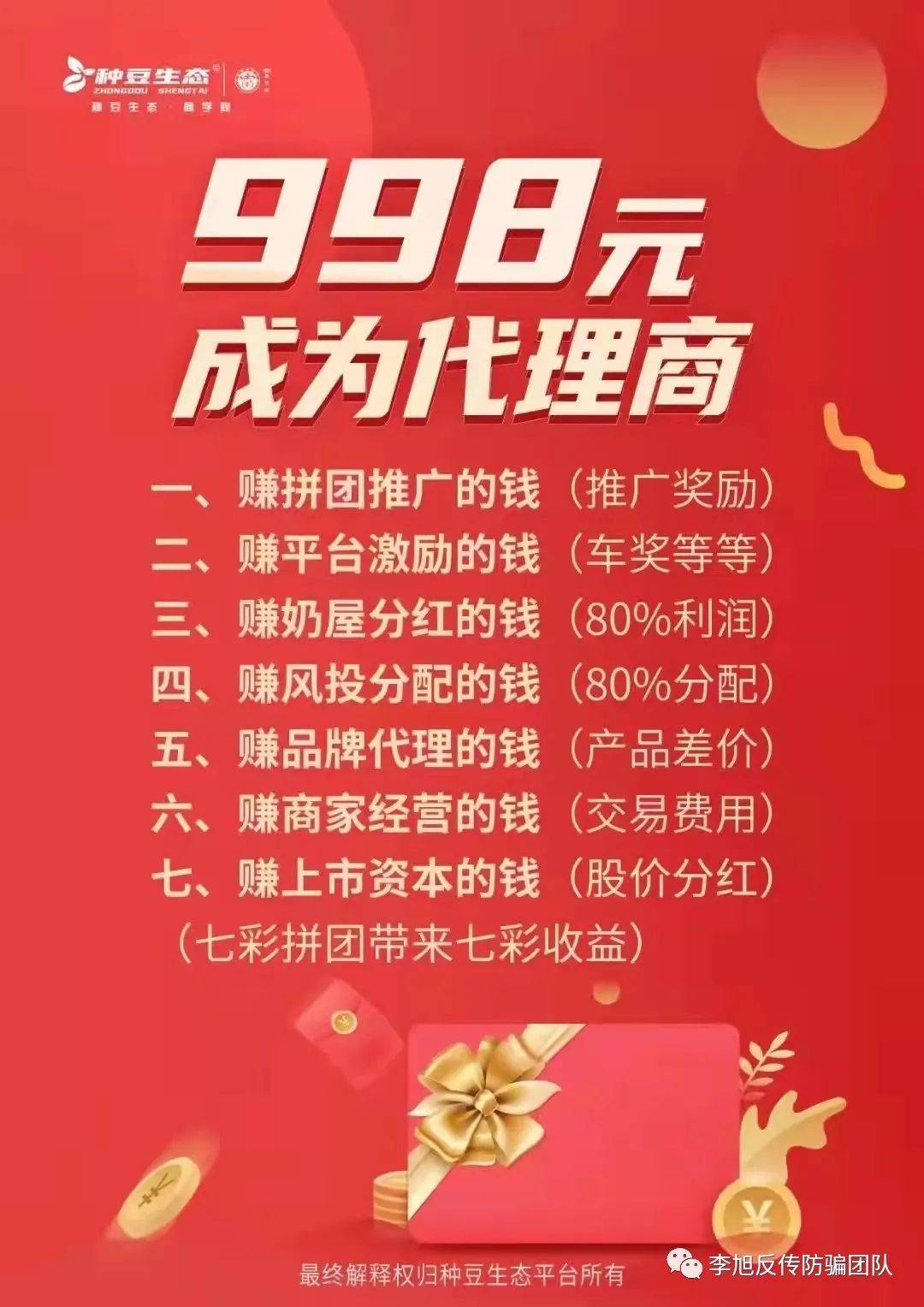 種豆生態(tài)某代理聲稱“種豆生態(tài)平臺沒有模式,只有運(yùn)營方案!沒有直推間推,只有招代理商和互助,沒有報單,只有注冊代理商。”然而,李旭反傳防騙團(tuán)隊了解后發(fā)現(xiàn),只不過是換個說法而已。