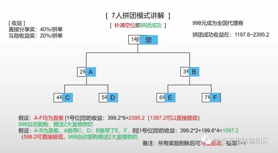 上述知情人士提到,他們采用7人拼團(tuán)模式,實則就是變相的傳銷行為。