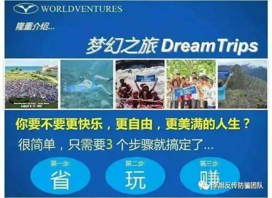 此外,知情人士還提到,近日,WV夢(mèng)幻之旅繼更名DT俱樂(lè)部之后,又將第三次更名DTI (Dreamtrips International)準(zhǔn)備進(jìn)入中國(guó)市場(chǎng)忽悠消費(fèi)者,而所謂的新公司DTI,已經(jīng)推出與國(guó)內(nèi)的高端品牌酒店合作的新會(huì)員旅游套餐,并在旅游套餐期間于高端品牌酒店內(nèi)開(kāi)展招商會(huì)??梢钥闯觯呀?jīng)有一些人開(kāi)始躍躍欲試,繼續(xù)幫助這個(gè)公司發(fā)展中國(guó)業(yè)務(wù)賺取傭金,收割中國(guó)會(huì)員。后續(xù)情況,李旭反傳防騙團(tuán)隊(duì)將持續(xù)關(guān)注。