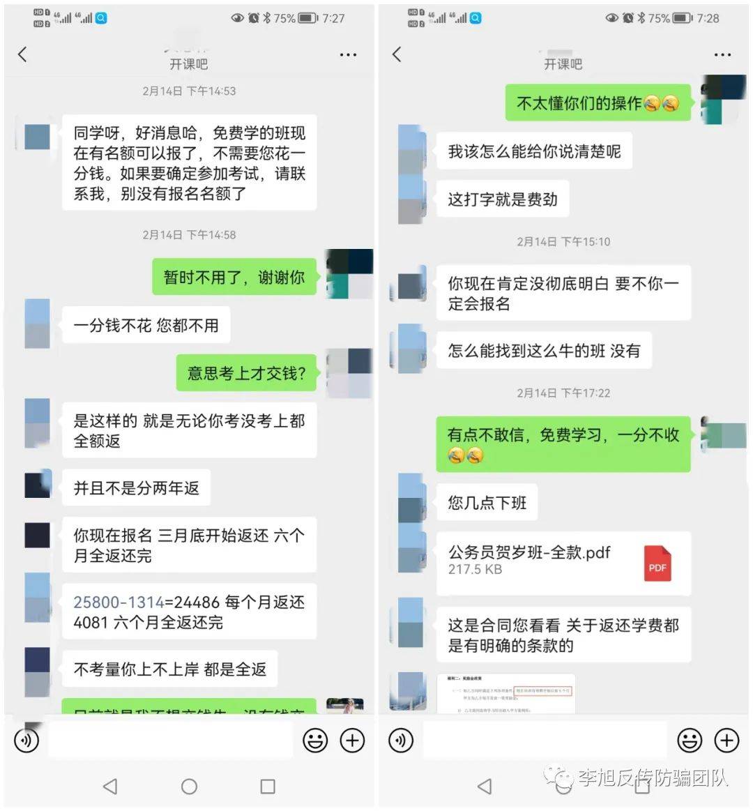 這究竟是怎么回事呢?李旭反傳防騙團(tuán)隊(duì)向“開(kāi)課吧”多位學(xué)員進(jìn)行了解。