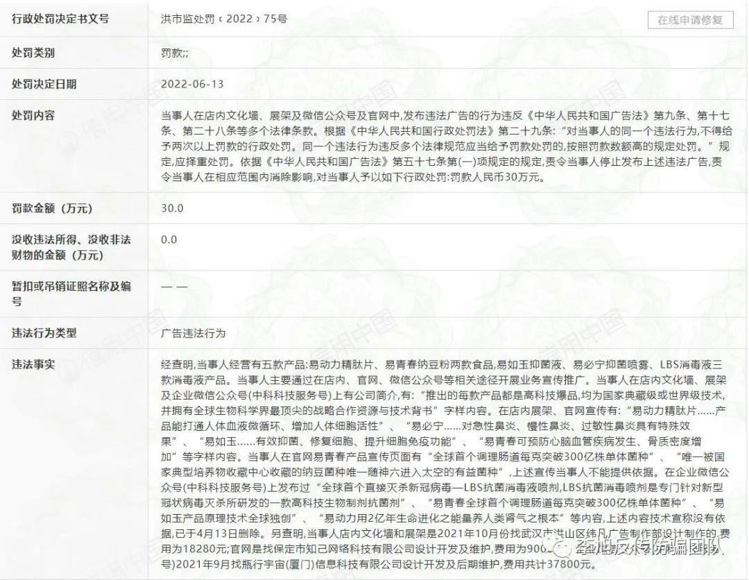 △中科科技的產(chǎn)品 日前,李旭反傳防騙團(tuán)隊(duì)重新搜索公眾號(hào)“中科科技服務(wù)號(hào)”發(fā)現(xiàn)很多文章都已經(jīng)刪除。曝光文章中多提到的宣傳材料都已經(jīng)不見了。 相關(guān)聯(lián)公司也因?yàn)樯嫦訌V告違法行為而被市場(chǎng)監(jiān)管局罰款30萬元。