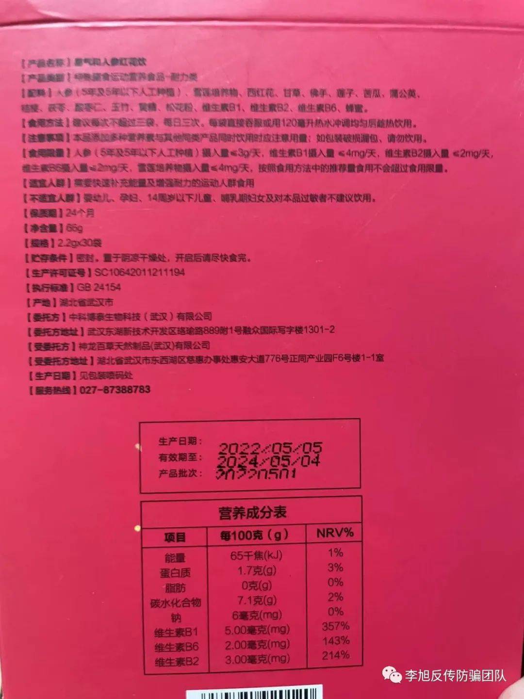 據(jù)知情人士透露,這家落網(wǎng)的公司名為湖北斐然科技有限公司(以下簡(jiǎn)稱斐然公司),被抓董事長(zhǎng)為李強(qiáng)。 企查查信息,湖北斐然科技有限公司成立于2016年7月22日,法定代表人為鄭雨萍,股東信息中顯示還包含李強(qiáng),持股50%。 當(dāng)然,今天我們要講的并不止這些。據(jù)網(wǎng)友爆料,李強(qiáng)及其專門坑騙中老年的團(tuán)伙遠(yuǎn)不止這么簡(jiǎn)單。 證據(jù)一:產(chǎn)品相似 據(jù)知情人士介紹,今年上半年,有一群人打著中科科技的旗號(hào),宣傳有號(hào)稱全球首個(gè)直接滅殺新冠病毒的LBS抗菌消毒噴劑。5月初,,某自媒體發(fā)文曝光中科科技借疫情炒作消毒液,涉嫌虛假宣傳一事。 其文中提到,微信公眾號(hào)“中科科技服務(wù)號(hào)”發(fā)布題為《全球首個(gè)直接滅殺新冠病毒—LBS抗菌消毒液噴劑》顯示,LBS抗菌消毒噴劑是專門針對(duì)新型冠狀病毒滅殺所研發(fā)的一款高科技生物制劑抗菌劑,由中國科學(xué)院、中國科學(xué)院理化技術(shù)研究所李畢忠博士帶隊(duì)研發(fā),LBS抗菌消毒噴劑經(jīng)過了中國科學(xué)院、中國軍事醫(yī)學(xué)科學(xué)院、中國普林機(jī)構(gòu)、上海微普檢測(cè)、SGS(瑞士通標(biāo)國際認(rèn)證檢測(cè)機(jī)構(gòu))、加拿大阿爾伯塔省立公共衛(wèi)生實(shí)驗(yàn)室等中外頂級(jí)機(jī)構(gòu)專業(yè)檢測(cè)認(rèn)證。經(jīng)檢測(cè)對(duì)新型冠病毒有99.99%的7天長(zhǎng)效滅殺作用。 還有全球首個(gè)調(diào)理腸胃的“易青春”產(chǎn)品;可以修復(fù)細(xì)胞膜電位,有效阻斷病毒復(fù)制鏈條,打通生命微循環(huán)系統(tǒng),提高人體自身免疫力,實(shí)現(xiàn)生命系統(tǒng)自然康復(fù)的易如玉產(chǎn)品。 值得注意的是,該文中還提到有一款宣傳可以增強(qiáng)人體耐力的特殊膳食“人參紅花飲”,跟文章開頭提到的被查處的虛假保健品同名。