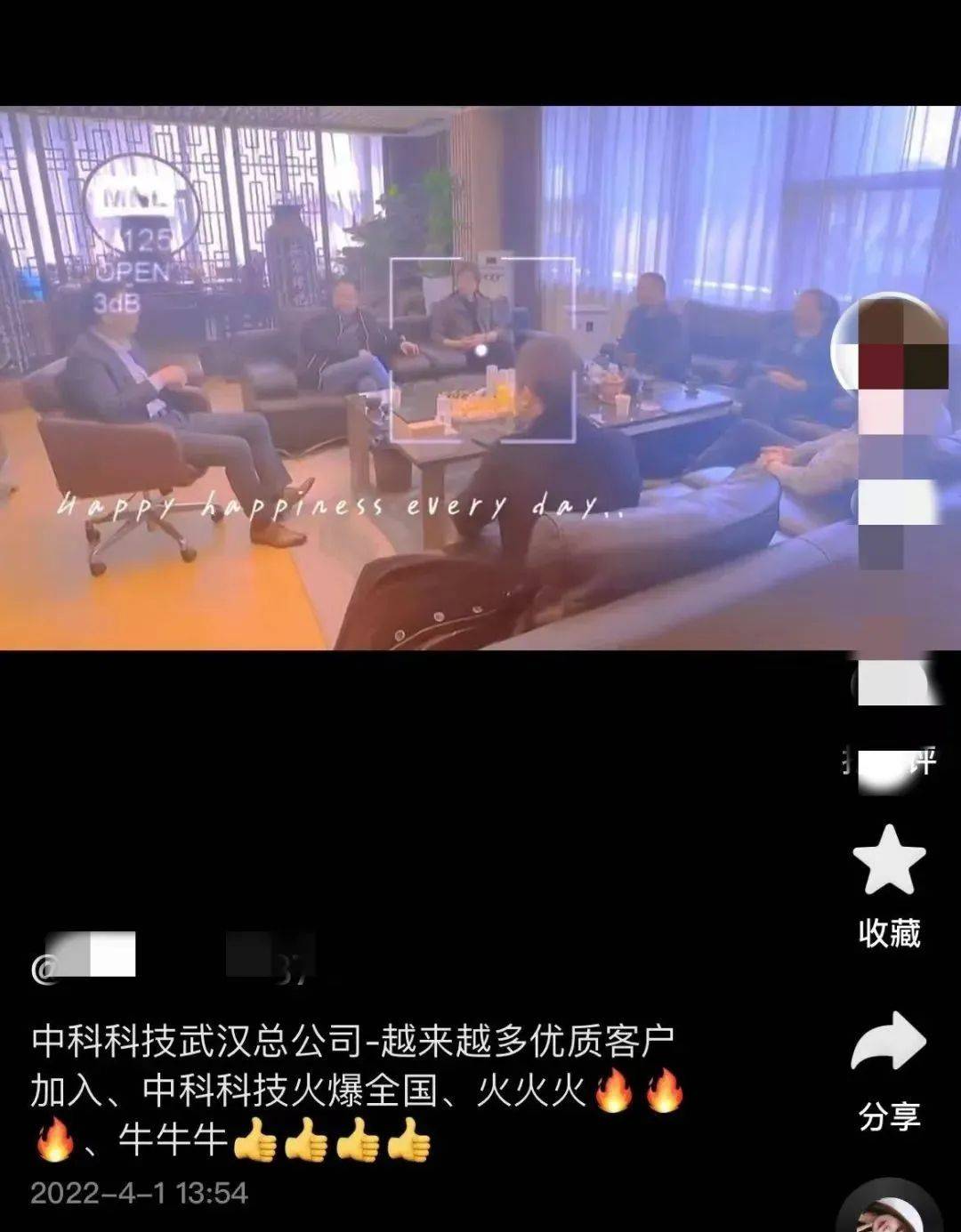 △某短視頻平臺(tái)博主宣傳中科科技武漢總公司的辦公場(chǎng)所 可以看出這是同一間辦公室 李旭反傳防騙團(tuán)隊(duì)以“中科科技董事長(zhǎng)李強(qiáng)”為關(guān)鍵詞進(jìn)行搜索,看到他曾出席過一些活動(dòng)。在某短視頻平臺(tái)上,也看到某推廣人員發(fā)布的視頻中,有李強(qiáng)的身影。 此外,李旭反傳防騙團(tuán)隊(duì)還注意到,曾在眼波視界擔(dān)任總顧問的趙俊峰、邵宏彬等人,也出現(xiàn)在中科科技相關(guān)推文中。
