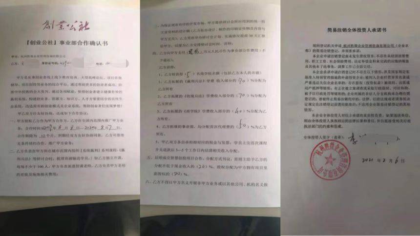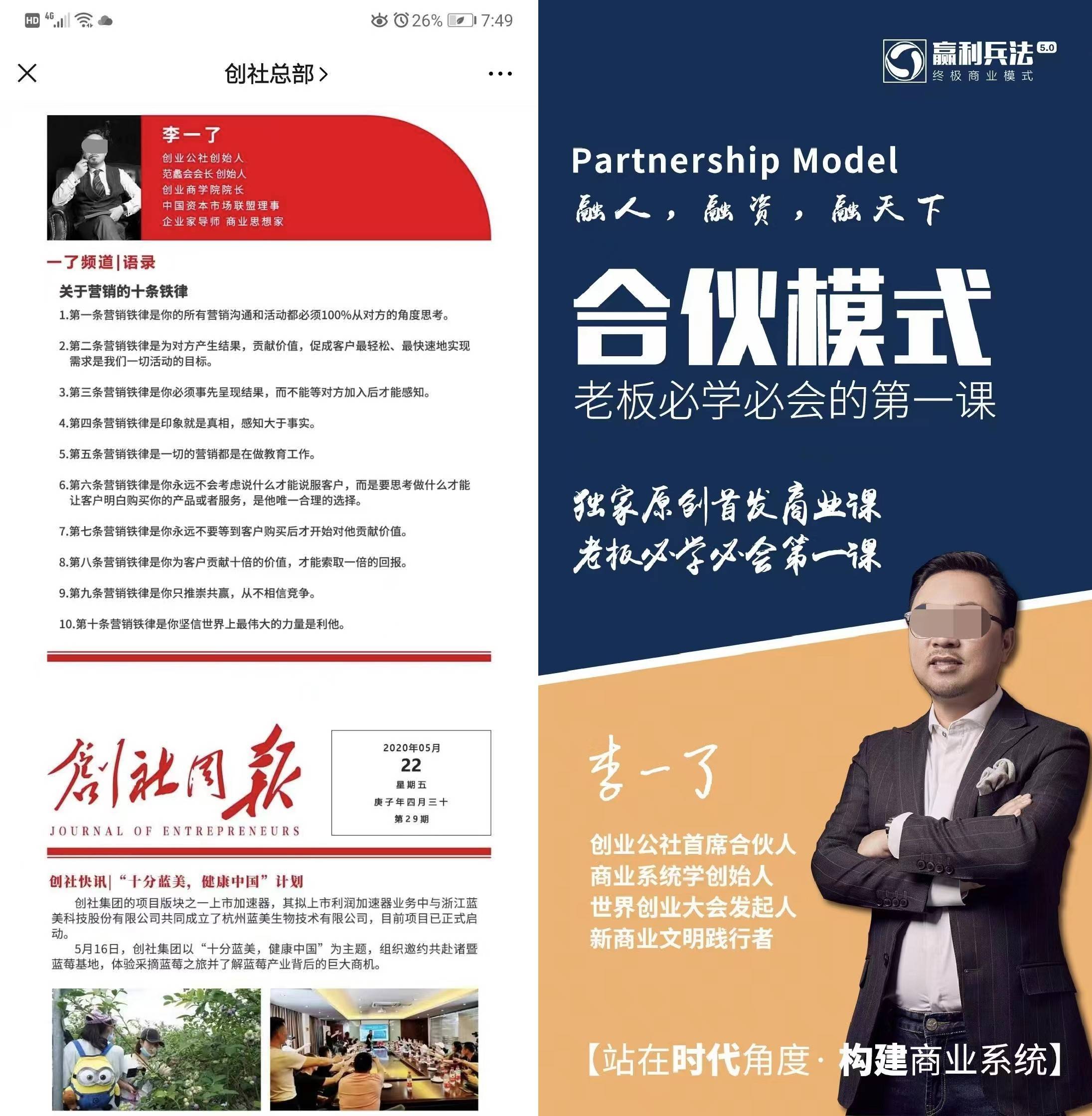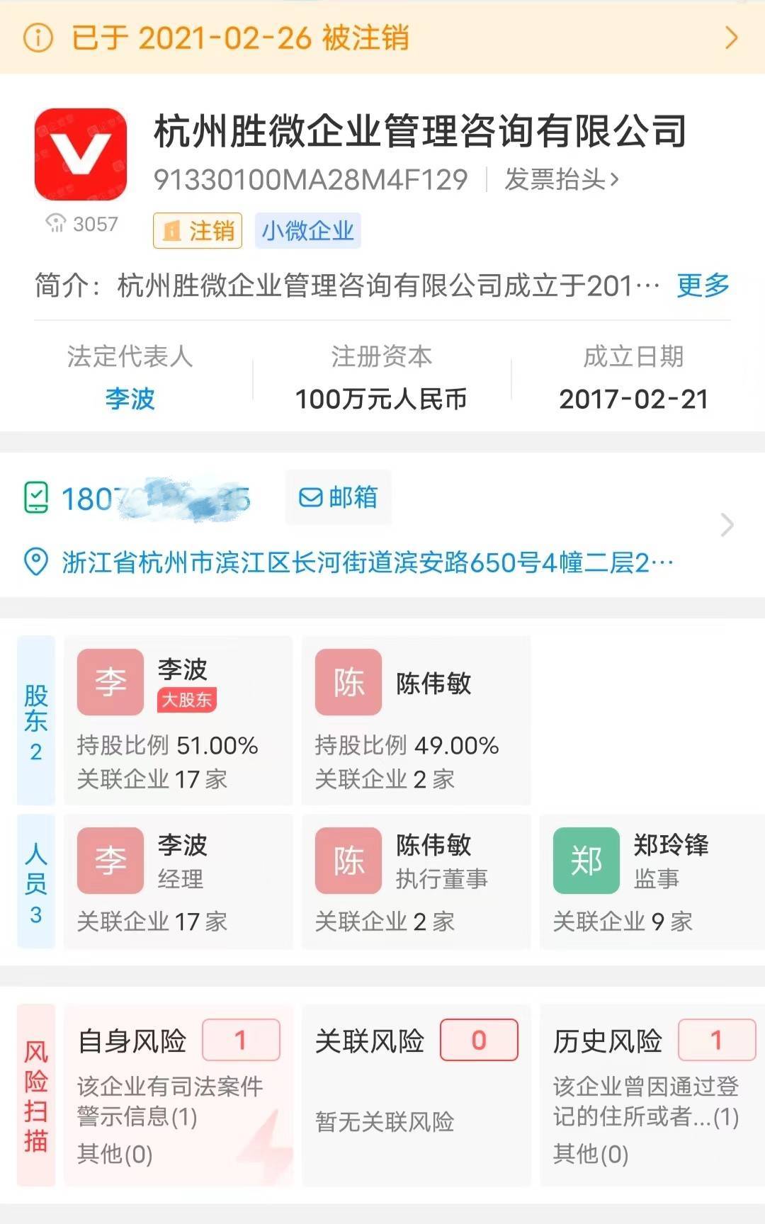 按照合同,杭州勝微企業(yè)管理咨詢有限公司應(yīng)按約定舉行《系統(tǒng)盈利》課程,由萊女士為課程輸送參會(huì)人員,以此來(lái)獲得與會(huì)人員繳納費(fèi)用的分成。可誰(shuí)料該公司并未履行合同,且在2021年2月將該公司完成了簡(jiǎn)易注銷。至此,萊女士才發(fā)現(xiàn)自己被騙,20萬(wàn)元也竹籃打水一場(chǎng)空。 二、創(chuàng)業(yè)公社是何許人也 據(jù)了解,這家企業(yè)叫做“創(chuàng)業(yè)公社”,隸屬于杭州勝微企業(yè)管理咨詢有限公司,成立于2017年2月,法人李波。而在創(chuàng)業(yè)公社的宣傳上,其創(chuàng)始人化名李一了。
