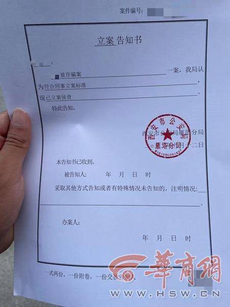 根據(jù)程華的《立案告知書》顯示,9月12日,因涉嫌詐騙此案已被公安雁塔分局立案偵查。目前,警方正在進(jìn)一步偵辦中。