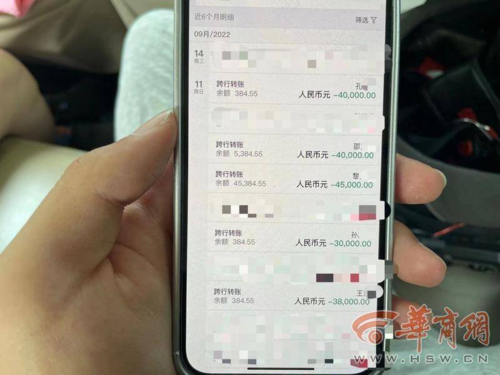 根據(jù)她的轉(zhuǎn)賬記錄顯示,9月11日中午12時19分,通過中國建設(shè)銀行APP轉(zhuǎn)賬5000元,收款方為中國銀行,王某偉;中午12時40分,通過中國銀行APP轉(zhuǎn)賬25000元,收款方為滄州銀行,王某;下午1時18分,通過中國銀行APP轉(zhuǎn)賬38000元,收款方為滄州銀行,王某;下午1時40分,通過中國銀行APP轉(zhuǎn)賬30000元,收款方為中國農(nóng)業(yè)銀行,孫某軍;下午2時32分,通過中國銀行APP轉(zhuǎn)賬45000元,收款方為中國農(nóng)業(yè)銀行,黎某強(qiáng);下午2時47分,通過中國銀行APP轉(zhuǎn)賬40000元,收款方為浙江農(nóng)商銀行,邵某望;下午3時52分,通過中國建設(shè)銀行APP轉(zhuǎn)賬92400元,收款方為中國農(nóng)業(yè)銀行,唐某濱;下午5時05分,通過中國銀行APP轉(zhuǎn)賬40000元,收款方為中國農(nóng)業(yè)銀行,孔某有。短短6小時內(nèi),程華共進(jìn)行了8筆轉(zhuǎn)賬,共計(jì)315400元。程華說,轉(zhuǎn)賬期間,銀行工作人員發(fā)現(xiàn)她轉(zhuǎn)賬交易頻繁,還致電提醒她小心電信詐騙,但她不敢相信,“我覺得,這筆錢能回來。”