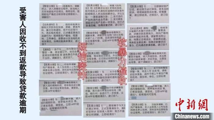 ▲圖為受害人因收不到返款導致貸款逾期,被催收短信轟炸?!±ッ魇泄簿直P龍分局供圖