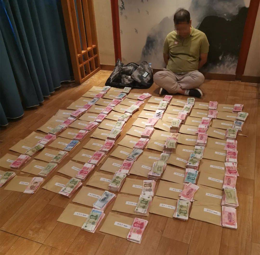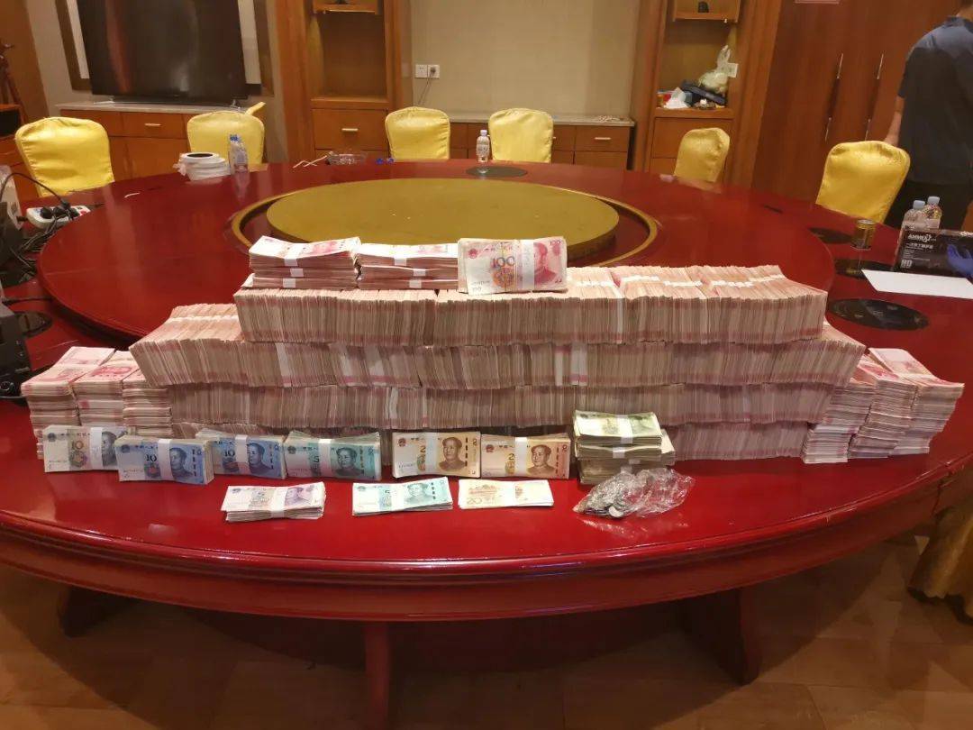 ▲現(xiàn)場查獲的涉案現(xiàn)金