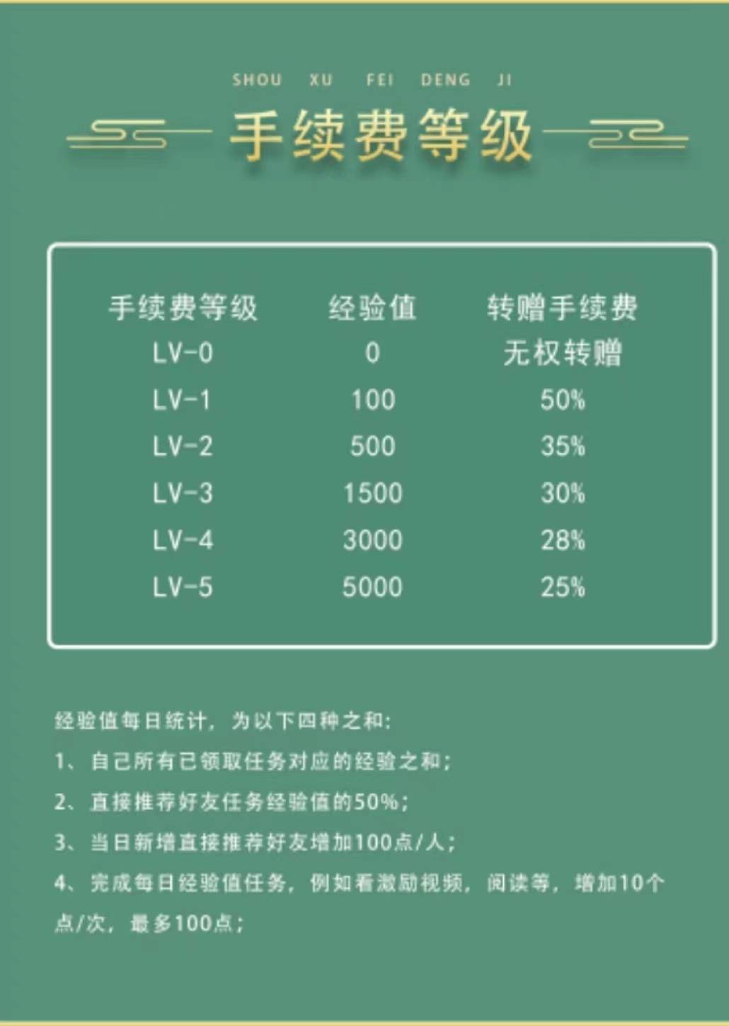 同時(shí),該平臺(tái)的交易手續(xù)費(fèi)會(huì)根據(jù)會(huì)員直接分銷用戶的數(shù)量或者任務(wù)包等級(jí)也有著不同的規(guī)定,直接分享的好友數(shù)量越多或者任務(wù)包等級(jí)越高則交易手續(xù)費(fèi)越低,具體規(guī)則如下圖: