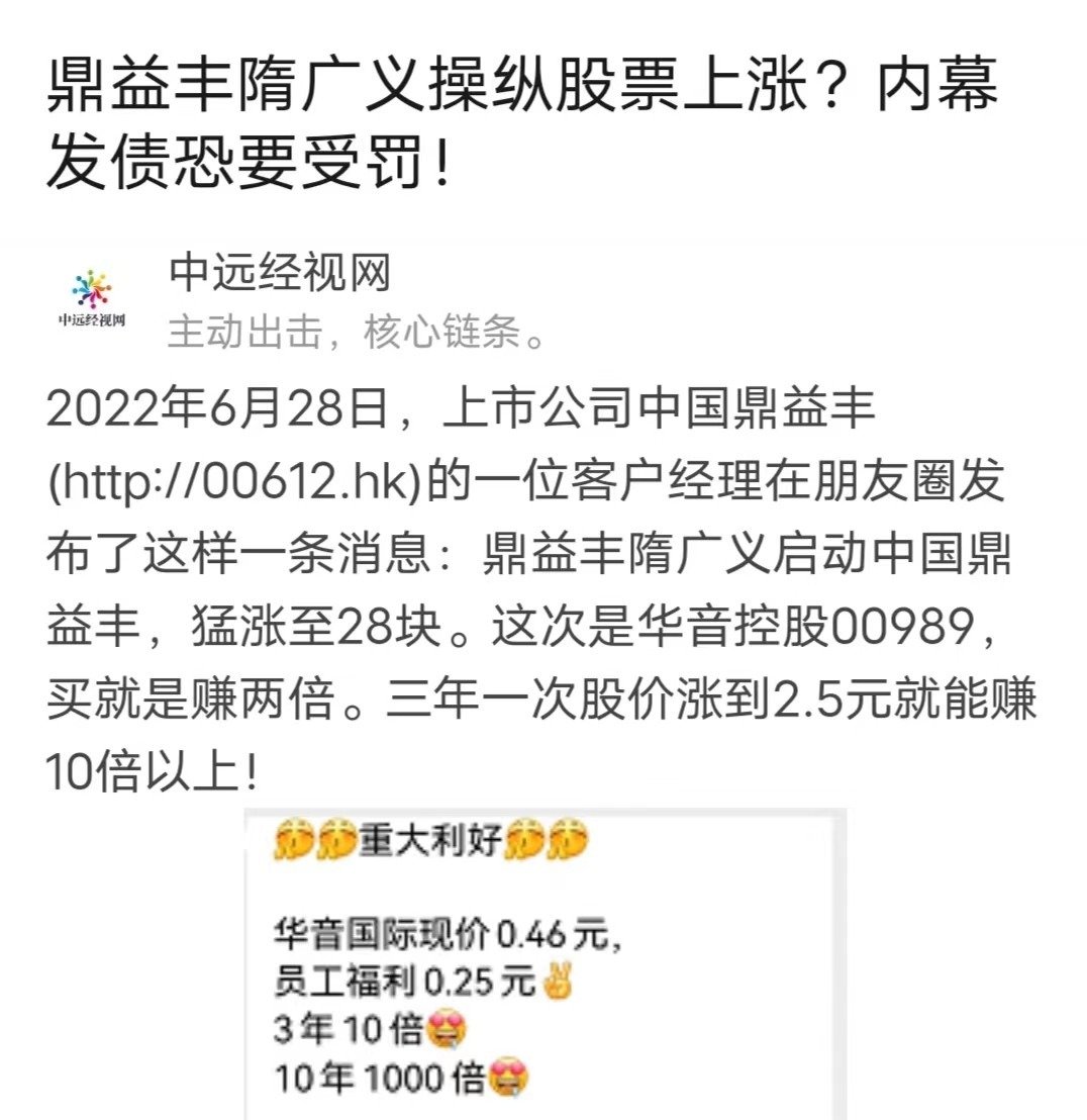 2022年6月,隋廣義的鼎益豐集團(tuán)又被曝出人為操縱股票上漲,恐將被嚴(yán)懲。