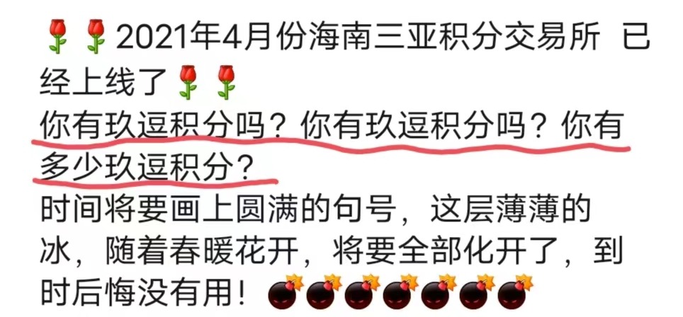 在我國(guó),公司原始股一般只面向公司創(chuàng)始人、高管等人,他人若想獲得股份,確實(shí)可以以初期公司組建或通過(guò)認(rèn)購(gòu)公司增發(fā)的股份等方式獲得,然而這樣的增發(fā),一般是私募性質(zhì)的,只面向少數(shù)或者與公司有特殊關(guān)系的人群,例如合作伙伴、核心供應(yīng)商等等,且金額較大。像“玖逗”這樣面向廣大群眾的小額股份,往往只為收割斂財(cái)。 不僅如此,“玖逗”不斷偷換概念,將積分與人民幣劃等號(hào),誘導(dǎo)人們拉人頭獲取或購(gòu)買積分。