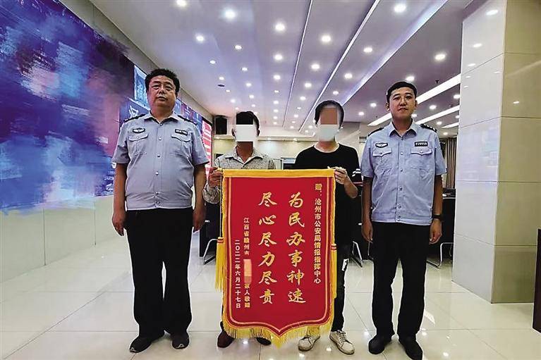 次日,肖某帶孩子專程趕到回曉龍所在的滄州市公安局情指中心,將一面錦旗送到回曉龍手中表示感謝。