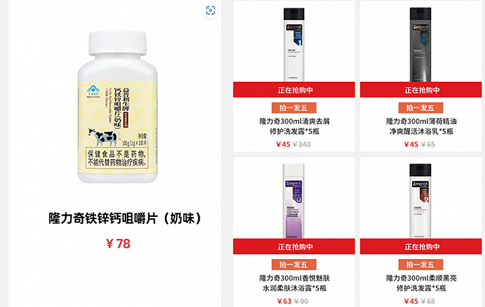在隆力奇官方旗艦店和包括華少、張儷等明星的抖音直播間,充斥著以下推廣語: