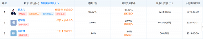 天眼查信息顯示,江蘇隆力奇生物科技股份有限公司和上海聚好信息技術(shù)有限公司的第一大股東均為徐之偉,分別持有57.7%、95.07%的公司股份。