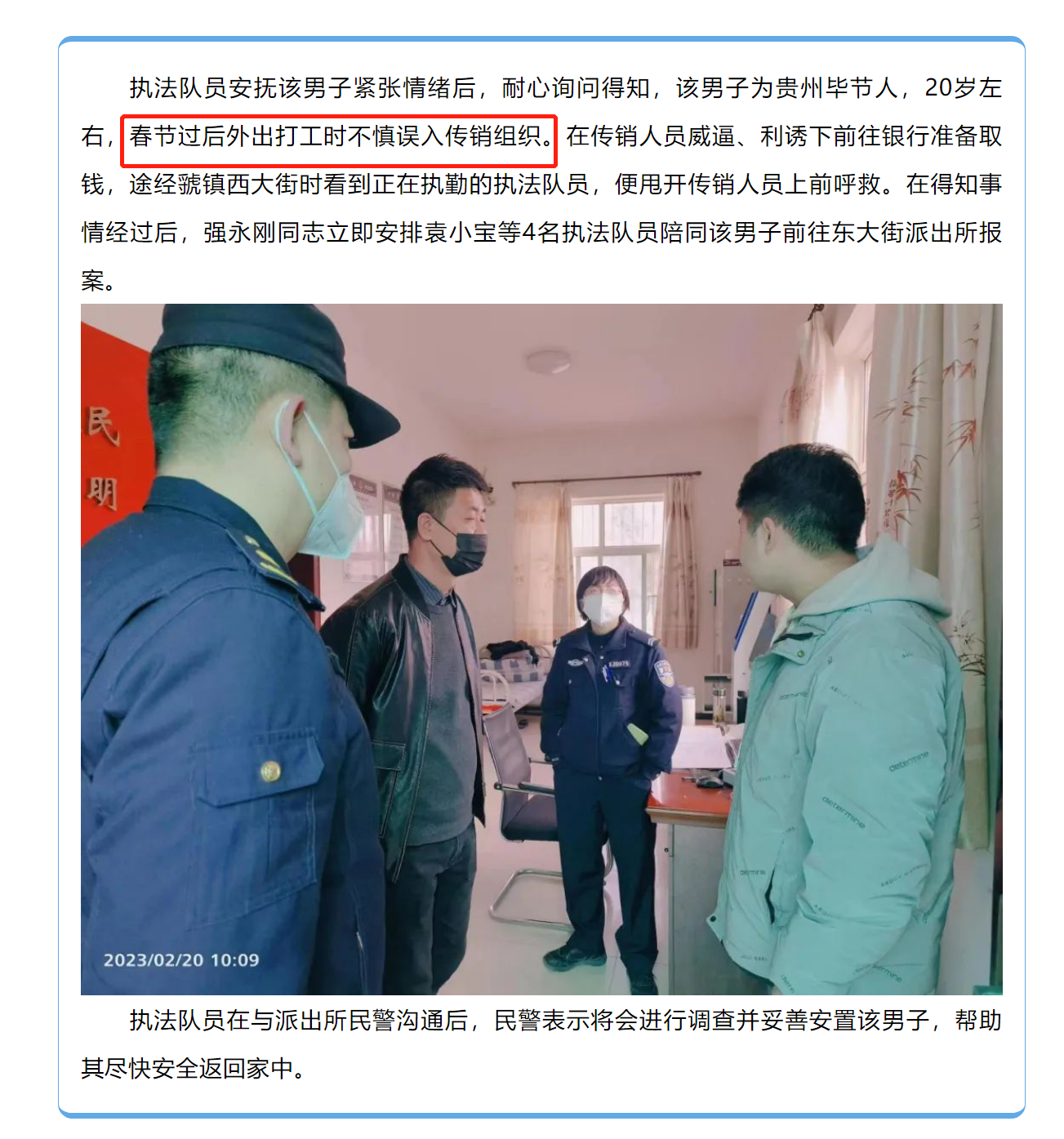 ▲圖片來源:各界寶雞《男子誤入傳銷 陳倉區(qū)城管出手相助》