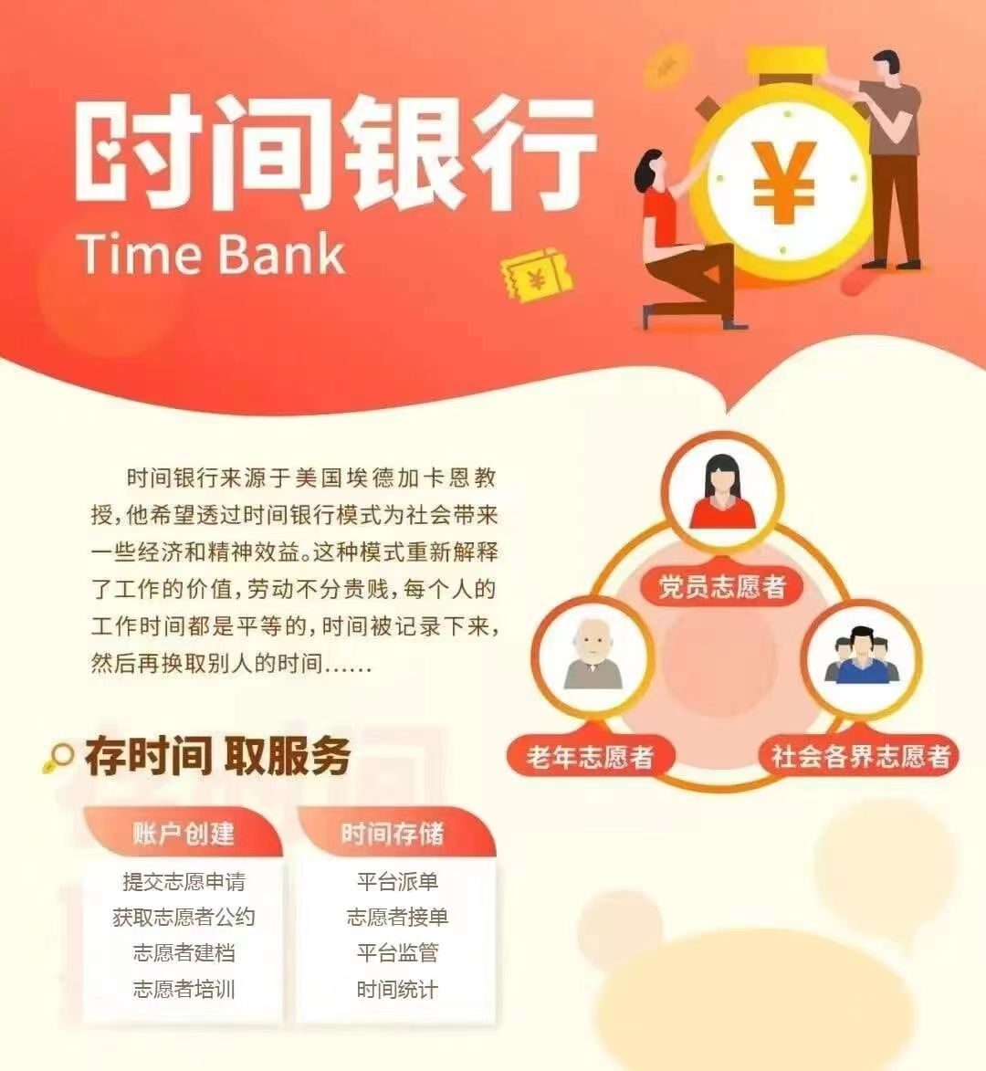 所謂“時間銀行”,并不是我們所熟知的貨幣流通銀行,它是指志愿者將參與公益服務(wù)的時間存進(jìn)“時間銀行”,當(dāng)自己遭遇困難時就可以從中支取“被服務(wù)時間”。