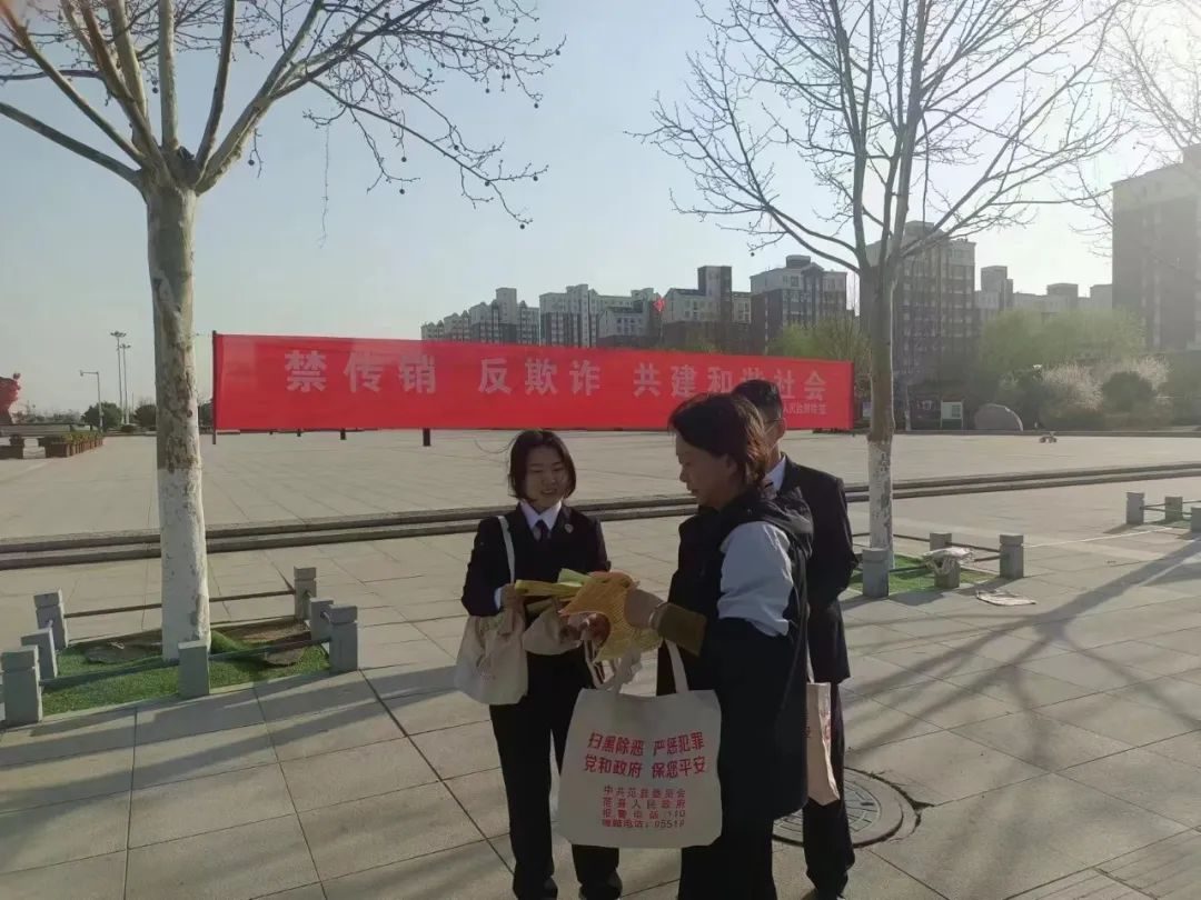 發(fā)表時(shí)間:2023-03-16 18:55作者:范縣人民檢察院來(lái)源:范縣人民檢察院 為幫助廣大人民群眾認(rèn)識(shí)到傳銷(xiāo)活動(dòng)的危害性和欺騙性,維護(hù)社會(huì)和諧穩(wěn)定,2023年3月15日,范縣人民檢察院組織干警走上街頭開(kāi)展反傳銷(xiāo)法治宣傳活動(dòng)。 ![]() 在活動(dòng)現(xiàn)場(chǎng),干警們通過(guò)拉設(shè)條幅、發(fā)放宣傳資料的形式,向群眾介紹了非法傳銷(xiāo)的危害性、如何識(shí)別非法傳銷(xiāo)、傳銷(xiāo)與網(wǎng)絡(luò)詐騙結(jié)合的新特點(diǎn)以及有關(guān)傳銷(xiāo)的法律知識(shí)等,撕下了傳銷(xiāo)的面紗,引導(dǎo)廣大群眾在生活、工作中切實(shí)增強(qiáng)自身防范意識(shí)和能力。 ![]() 此次活動(dòng),共發(fā)放宣傳資料300余份,解答法律咨詢(xún)50人次,通過(guò)這次宣傳行動(dòng),讓更多群眾了解了傳銷(xiāo)的本質(zhì),群眾紛紛表示,一定會(huì)提高警惕,遠(yuǎn)離傳銷(xiāo)。此次活動(dòng)收到了良好的宣傳效果、法律效果和社會(huì)效果。 [此文來(lái)源:范縣人民檢察院,版權(quán)說(shuō)明:以上文字及圖片來(lái)源于網(wǎng)絡(luò),僅供學(xué)習(xí)和交流使用,不具有任何商業(yè)用途,其目的在于傳遞更多的信息,并不代表本平臺(tái)贊同其觀點(diǎn)。版權(quán)歸原作者所有,如涉版權(quán)或來(lái)源標(biāo)注有誤,請(qǐng)及時(shí)和我們?nèi)〉寐?lián)系,我們將迅速處理,謝謝!]