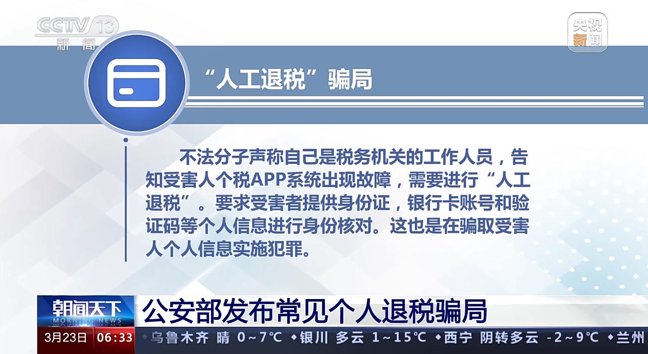 公安部發(fā)布4種常見個人退稅騙局 遇到這些情況要當(dāng)心