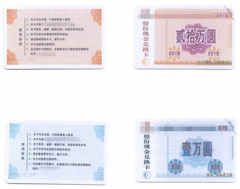 犯罪嫌疑人陶某偽造的股份現(xiàn)金兌換卡