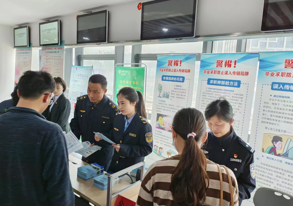 在活動現(xiàn)場,工作人員向求職人員詳細(xì)介紹了傳銷的定義、特點和危害,同時針對傳銷的常見手段和套路進(jìn)行了深入淺出地分析和講解。針對當(dāng)前網(wǎng)絡(luò)傳銷的不斷變異發(fā)展,提醒求職人員在網(wǎng)絡(luò)求職中辨別和防范網(wǎng)絡(luò)傳銷的方法,鼓勵求職人員參與打擊傳銷活動,積極傳播相關(guān)知識,共同維護(hù)社會安寧和穩(wěn)定,對可能涉?zhèn)鞯木€索進(jìn)行舉報。
