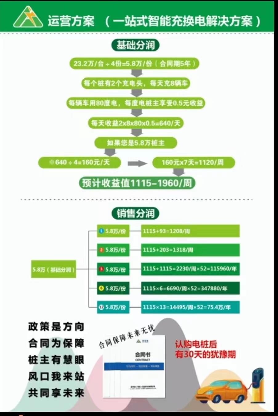 為了吸引投資人加大投資額度,公司宣稱(chēng)隨著總投資額的提高,有相應(yīng)的返利加速機(jī)制。按照該公司設(shè)定的規(guī)則,一次性購(gòu)買(mǎi)13個(gè)58000元的充電樁投資回報(bào)年化率可達(dá)200%。